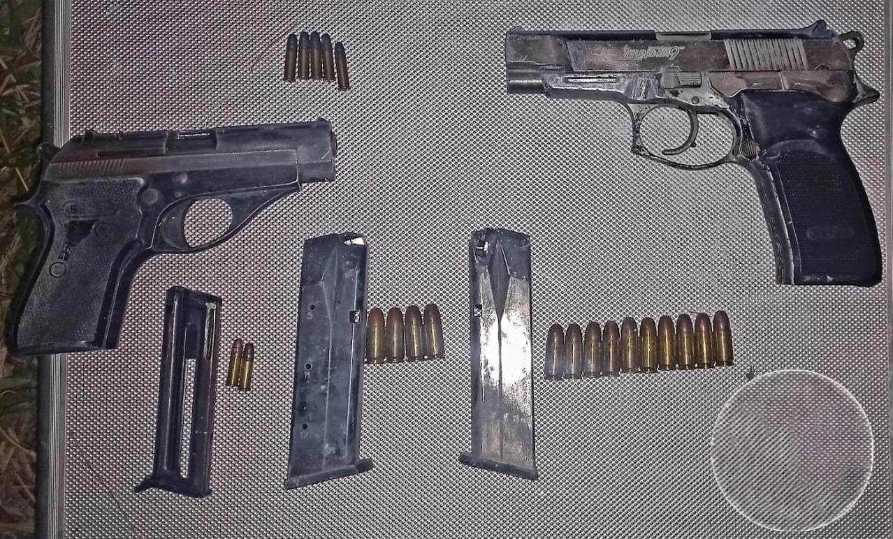 En cierto punto del baldío había tierra removida. Los investigadores buscaron allí y descubrieron dos pistolas enterradas: una calibre 9 milímetros con dos cargadores y 12 cartuchos y otra calibre 22 con 7 cartuchos.