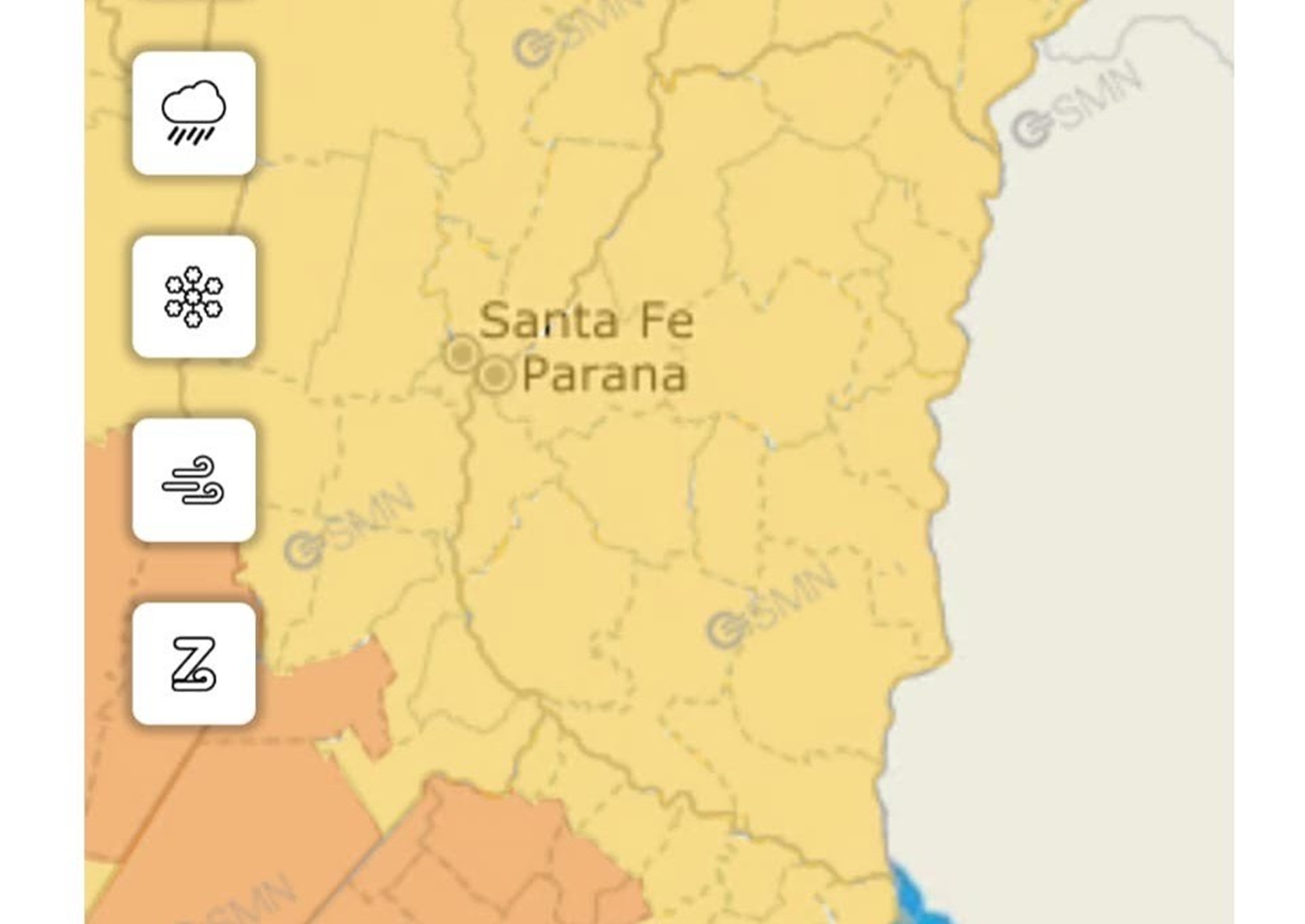 Desde el área de Defensa Civil de la provincia informaron que el Servicio Meteorológico Nacional emitió un alerta amarilla para todo el territorio provincial.