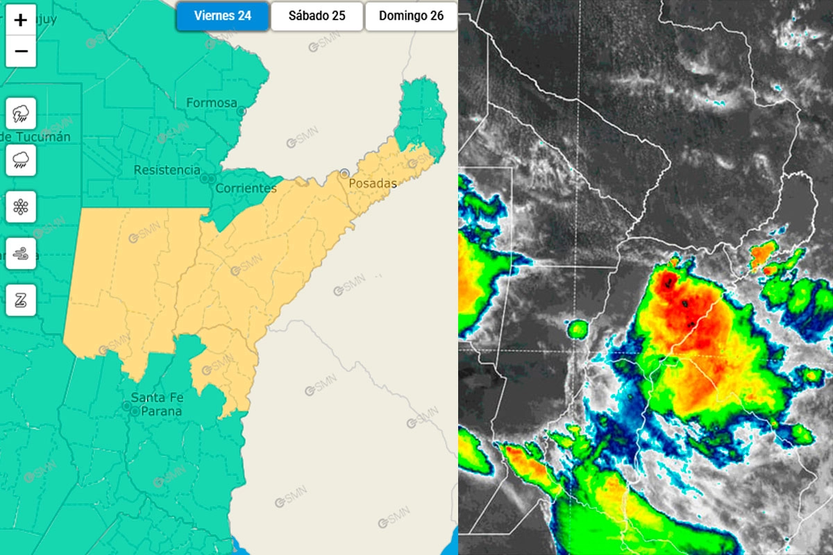 El Servicio Meteorológico Nacional (SMN), dio a conocer pasado el mediodía, un aviso de alerta amarillo por tormentas para la zona norte de Entre Ríos, la provincia de Corrientes, parte de Misiones, el norte de Santa Fe y zonas de otras cinco provincias del norte argentino.