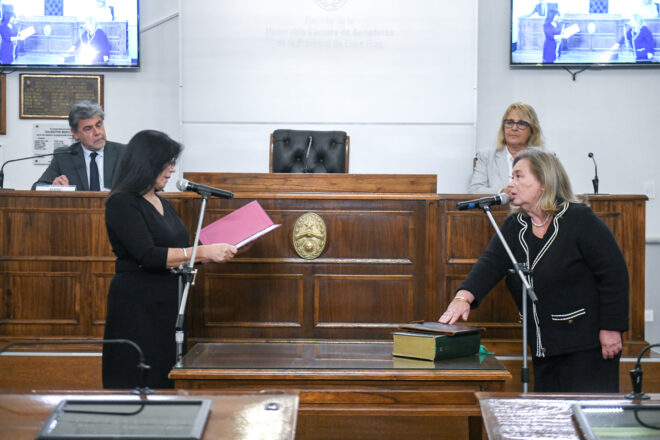 La vicegobernadora y presidente del Senado, Alicia Aluani, tomó juramento a los integrantes del Honorable Jurado de Enjuiciamiento para el bienio 2026/2027, en cumplimiento con el mandato constitucional y de conformidad con el artículo 7° de la Ley N°9283. El acto se desarrolló este miércoles al mediodía en el recinto de la Cámara de Senadores.