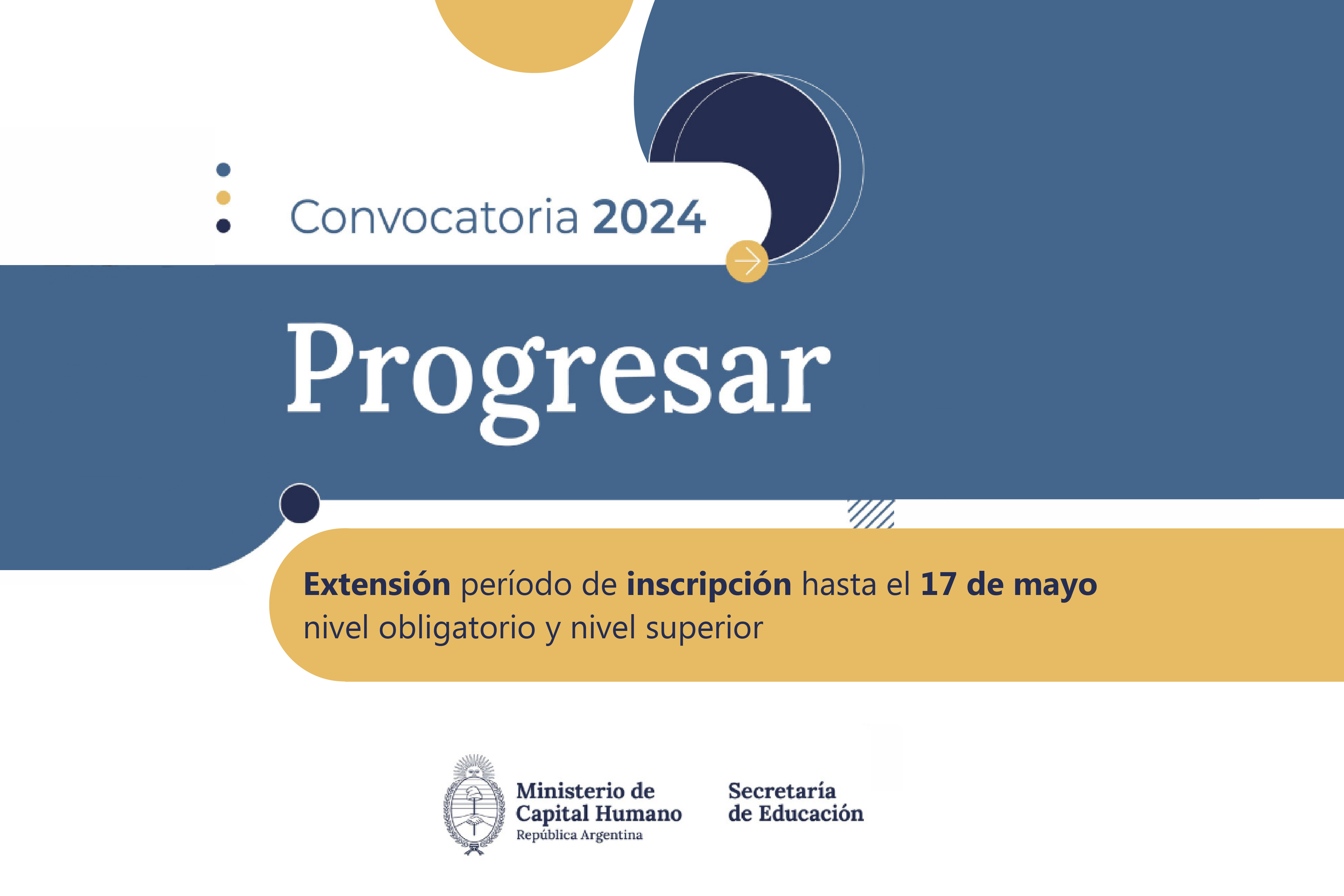 El Consejo General de Educación informó que se extendió el período de inscripción a las Becas Progresar hasta el 17 de mayo para las líneas de Nivel Obligatorio y Nivel Superior. La línea de Progresar Trabajo mantiene abierta su inscripción hasta el 30 de noviembre.