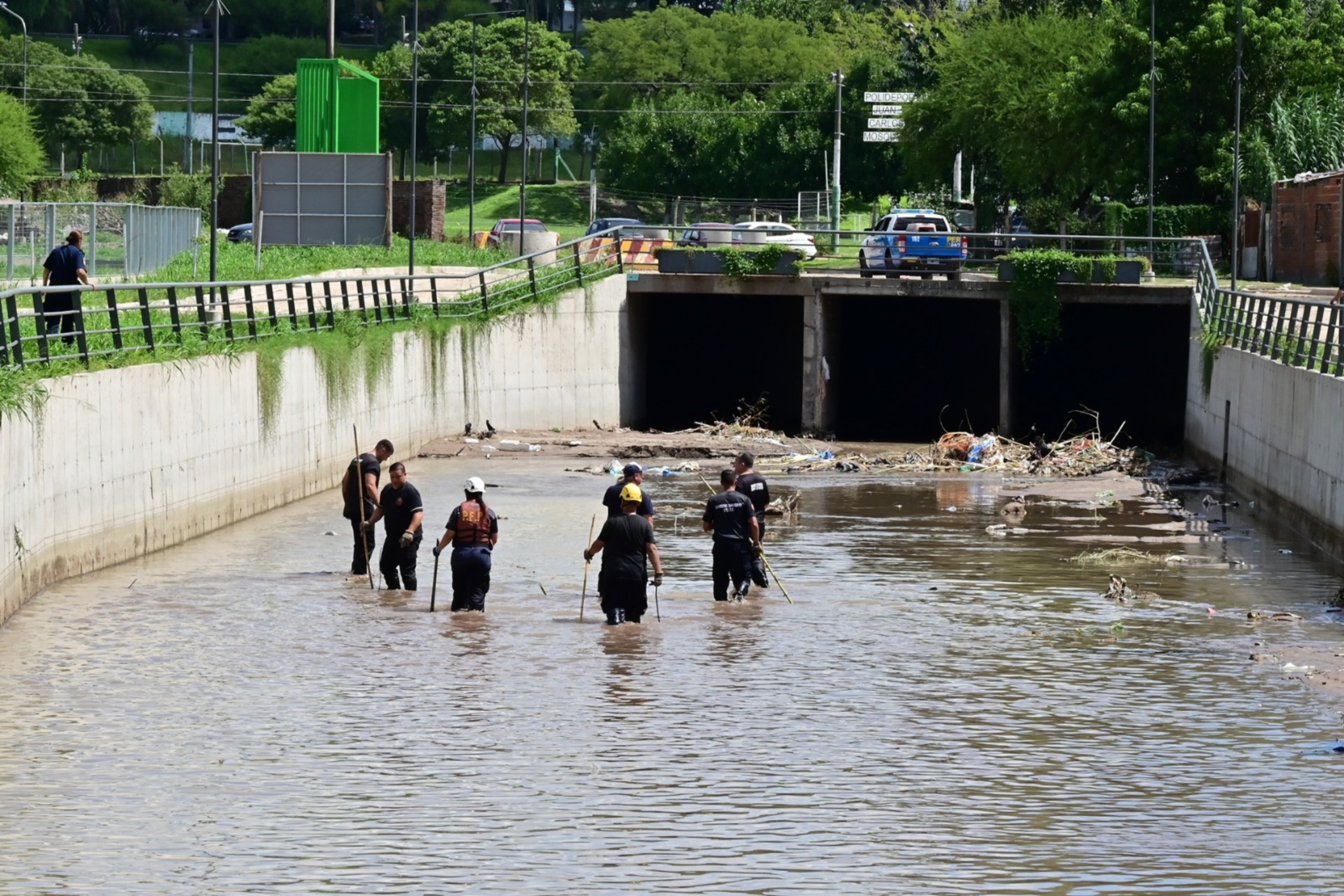 Los grupos especiales y los Bomberos Zapadores llevaron adelante las tareas más riesgosas en los sectores de agua y escombros, mientras que la División Montada y Canes resultaron fundamentales para el rastreo en las zonas de espesa vegetación y en las márgenes del arroyo. Asimismo, la Dirección General de Investigaciones e Inteligencia Criminal aportó el análisis de campo necesario para orientar los esfuerzos hacia los puntos de mayor probabilidad de hallazgo.