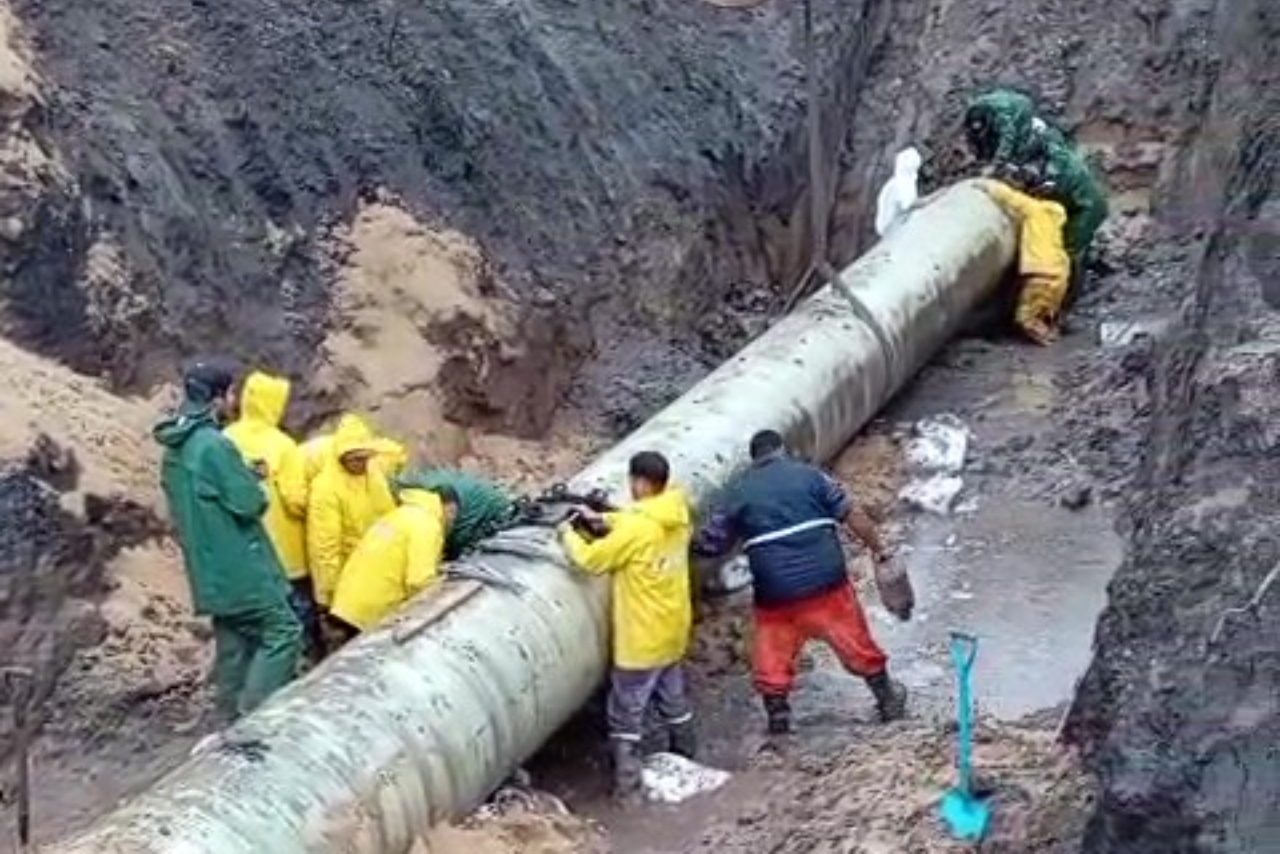 La rotura de un conducto de 900 mm afecta el suministro en varios sectores de la capital provincial. Las tareas continúan pese a las condiciones climáticas. El Municipio trabaja intensamente para resolver el problema lo antes posible.