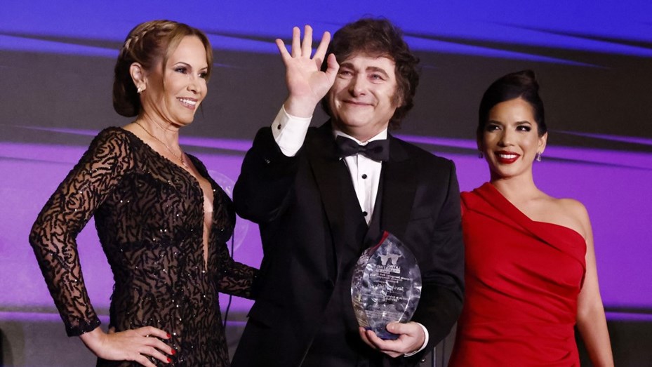 La secretaria general de la Presidencia, Karina Milei, el canciller Gerardo Werthein, y el ministro de Economía, Luis Caputo, se sentaron en la mesa junto a Milei, que fue reconocido con el premio «Campeón de la Libertad Económica».