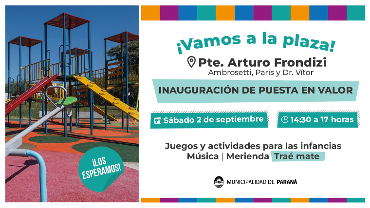Será este sábado 2 de septiembre, de 14.30 a 17 hs. El espacio recreativo está ubicado en las calles París y Ambrosetti, de Paraná. Habrá diversas actividades para las infancias, juegos y música