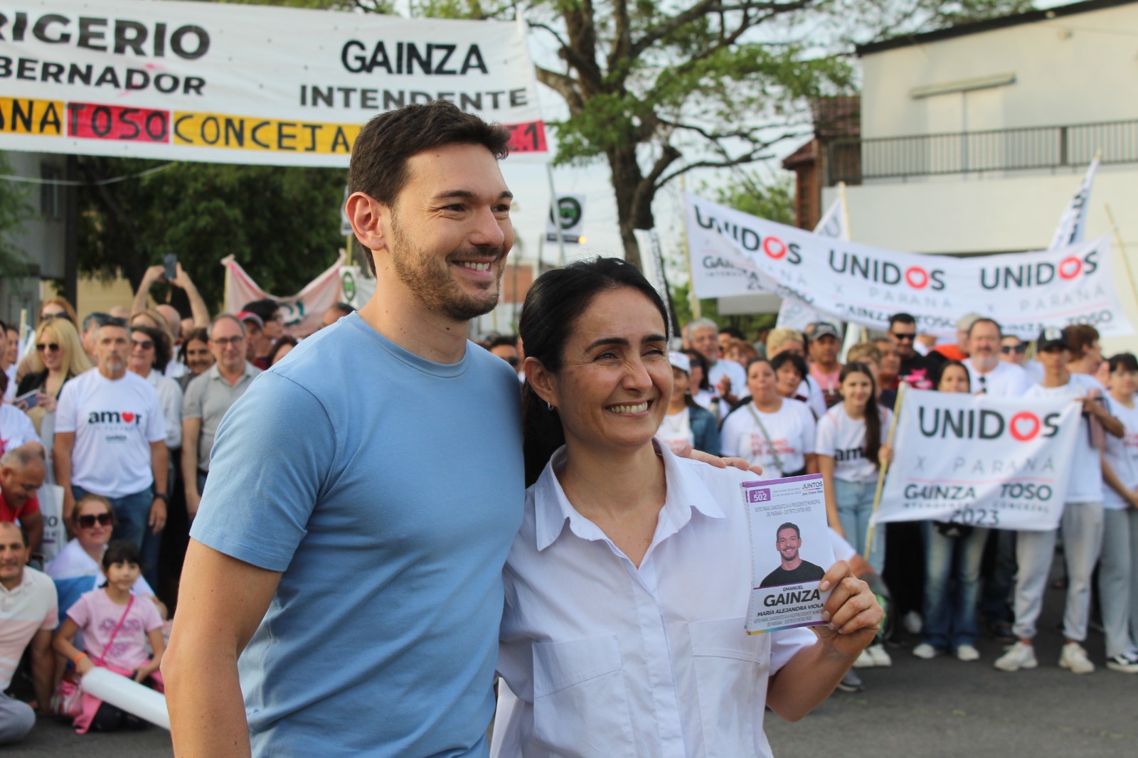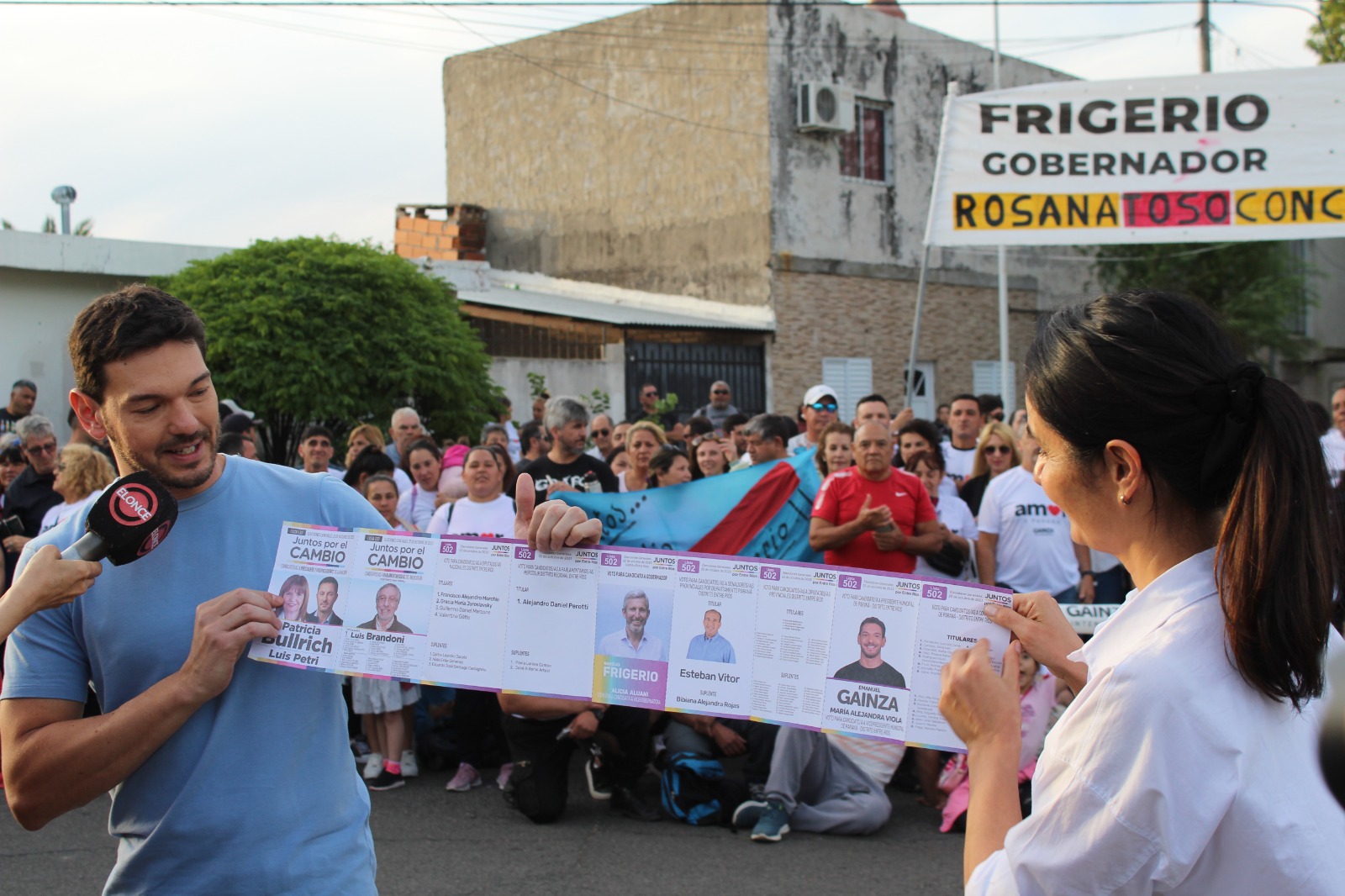 Por último Gainza mostró la boleta que lleva a Bullrich como candidata a Presidenta , a Frigerio como gobernador y su imagen para la intendencia de la ciudad. La militancia acompañó la colorida tarde al canto de “Se siente Ema Intendente” 🎶