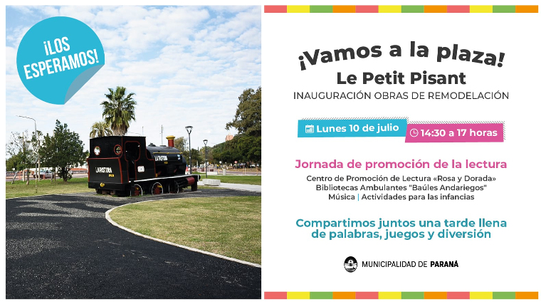 Para celebrar la habilitación del paseo público totalmente renovado, el Municipio, en conjunto con el Centro de Promoción de Lectura “Rosa y Dorada”, los Baúles Andariegos, realizará una jornada de promoción de la lectura, música y actividades para las infancias.