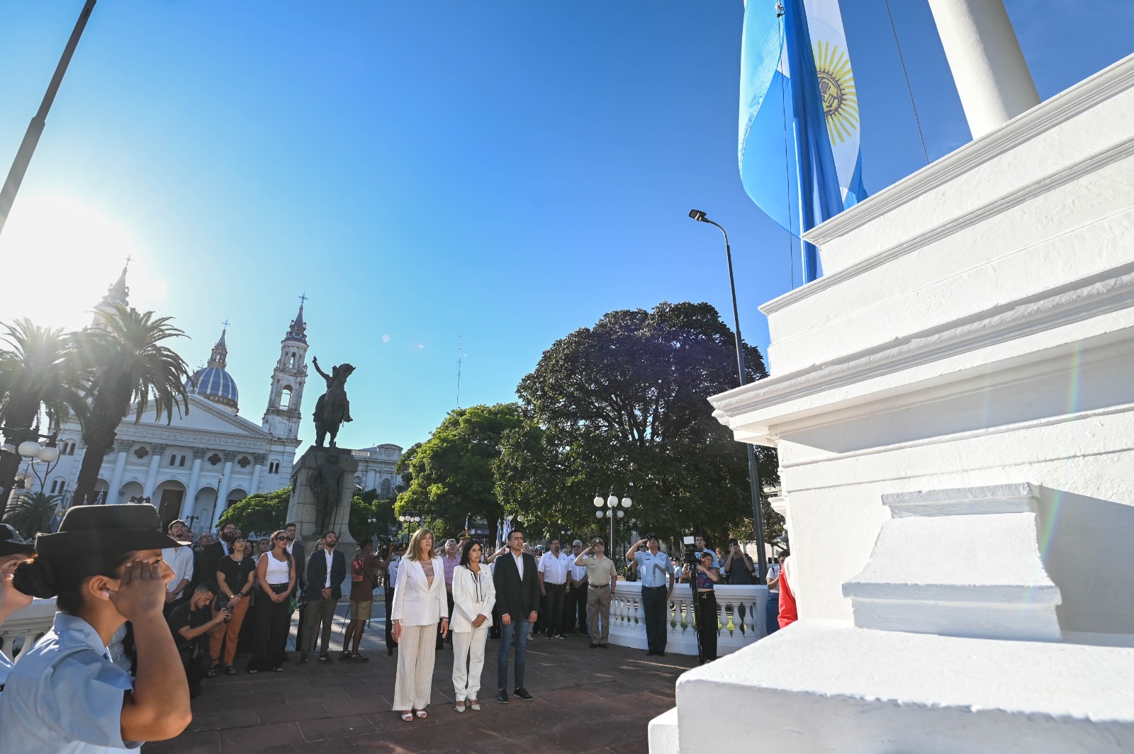 La actividad protocolar incluyó la colocación de ofrendas florales, izamiento de la bandera Argentina en el pabellón nacional en Plaza 1° de Mayo y entonación de himnos