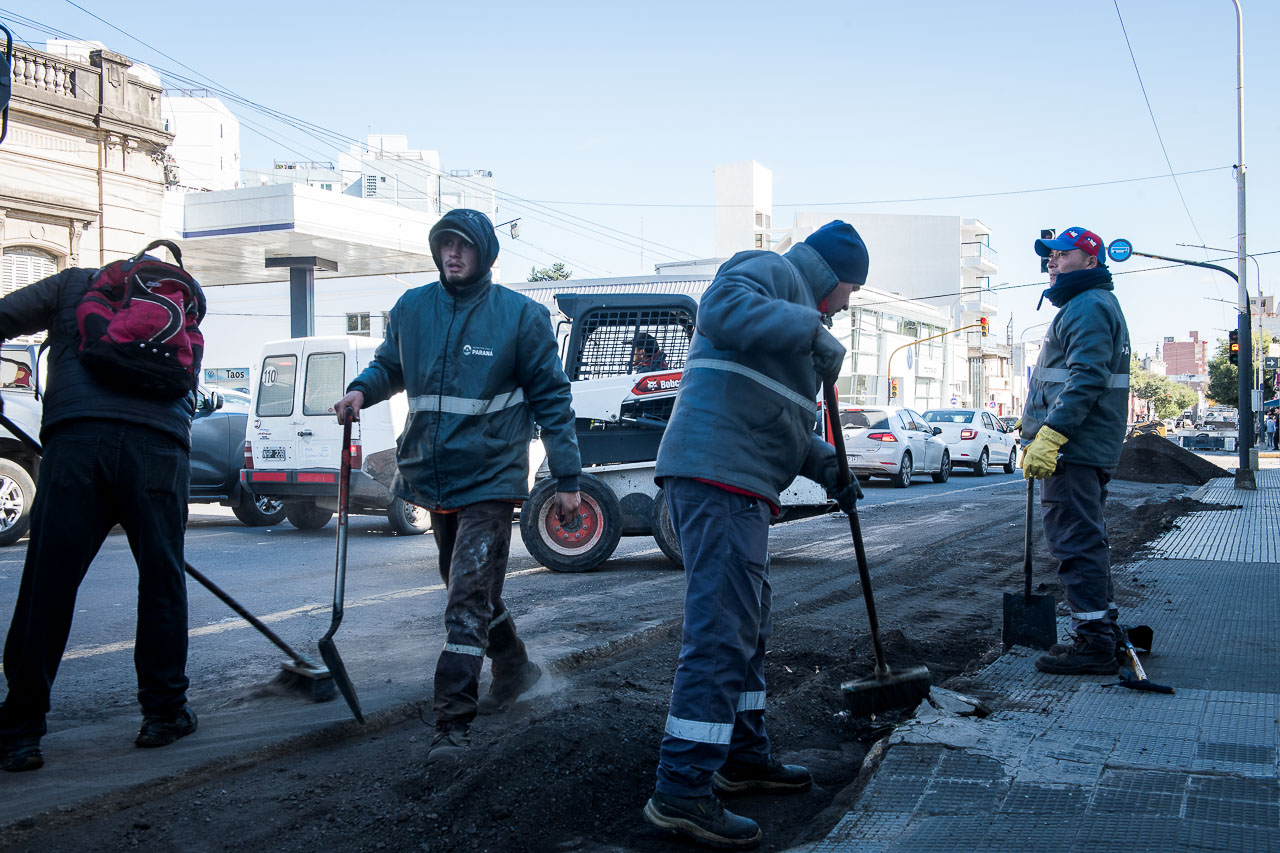 La Municipalidad realiza los trabajos entre avenida Ramírez y Bavio, en el carril exclusivo para colectivos. Las tareas se extenderán hasta el miércoles.