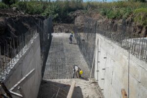 En las últimas jornadas, se realizó la demolición del pavimento existente a reconstruir en los laterales de la alcantarilla, además está en etapa de finalizado las cámaras de sumidero y se colocó el hormigón de base. También se comenzó con la instalación de la armadura de la alcantarilla.