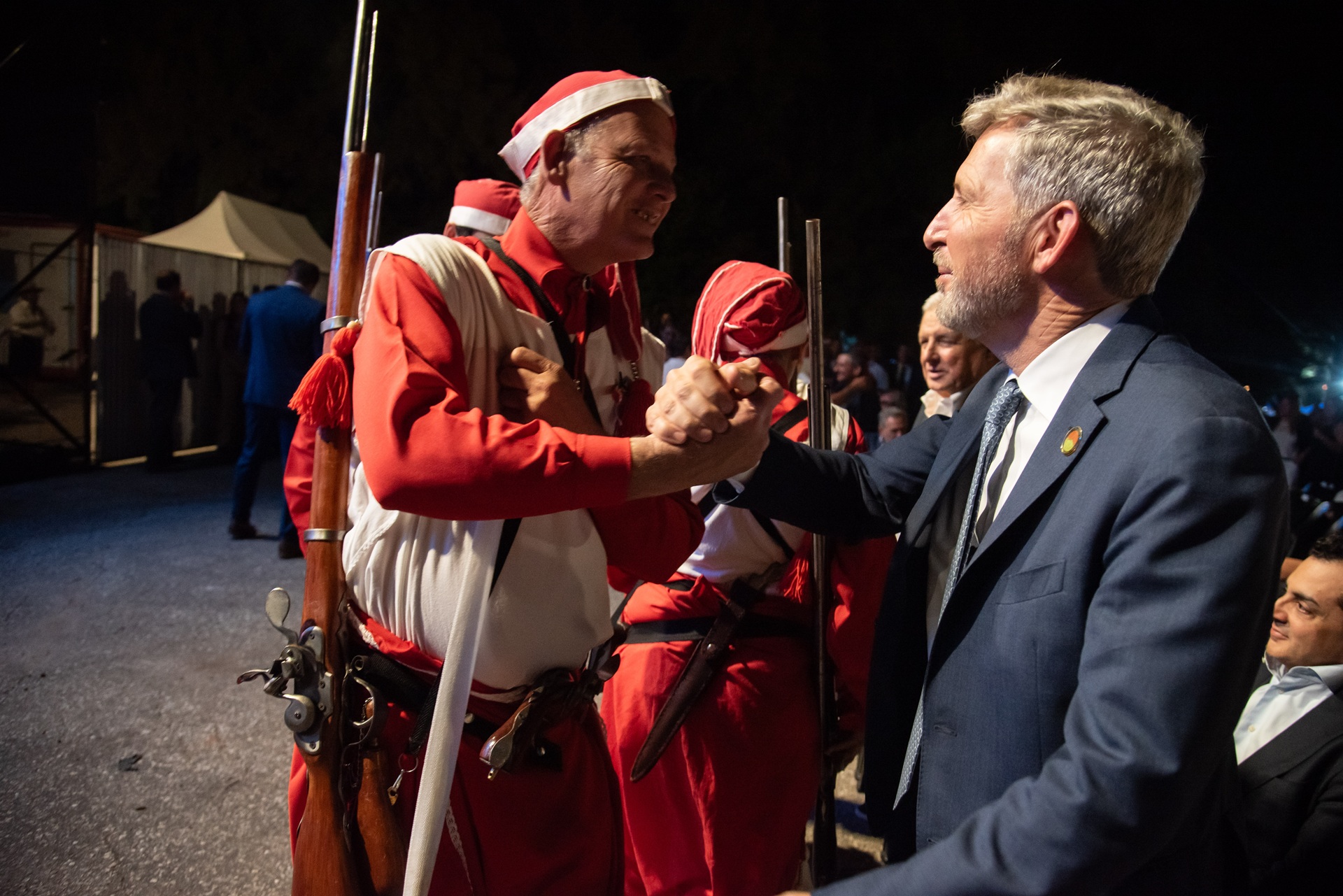 El gobernador Frigerio resaltó el valor cultural y simbólico del espectáculo realizado en el Palacio y agradeció especialmente a Santiago Miguel Rinaldi, Roberto Romani, a los artistas y a los actores que formaron parte de la puesta. «Fue una hermosa forma de traer el pasado al presente, de caminar nuestra historia y revivir escenas decisivas que marcaron el destino del país», expresó, al tiempo que valoró la participación de las familias entrerrianas y de autoridades de los distintos niveles del Estado.