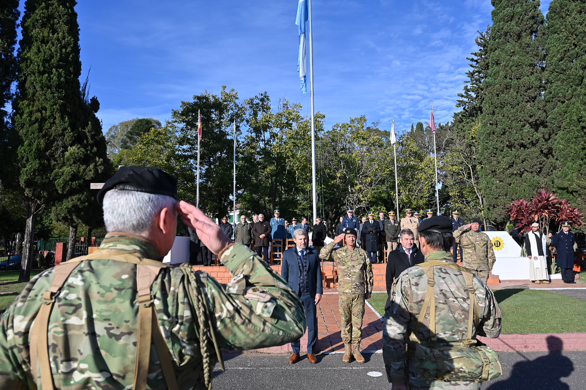 El gobernador Rogelio Frigerio participó este jueves del acto por el 215 aniversario de la creación del Ejército Argentino. El acto se realizó en la Plaza de Armas de la Base de Apoyo Logístico (BAL) de la Guarnición Militar de Paraná, y fue presidido por el segundo comandante, coronel Carlos Alfonso.