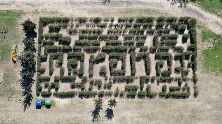 Además del paseo entre plantas, el detalle del laberinto es que desde el aire se lee Paraná, algo que desde el suelo no se distingue. Cuenta con un tamaño de 25×51 metros.