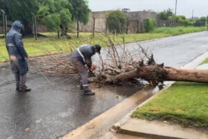 Protección Civil y distintas áreas intervienen en distintas zonas ante las inclemencias climáticas. Se registraron anegamientos y caídas de árboles. Se solicita a la población que extreme las precauciones y evite circular si no es necesario.