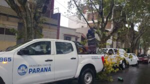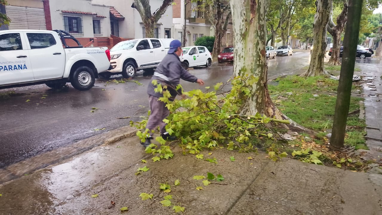 Desde la madrugada de este martes la ciudad de Paraná se ve afectada por constantes lluvias que han ocasionado anegamientos en distintos sectores. Además, los fuertes vientos registrados en las primeras horas generaron la caída de árboles.