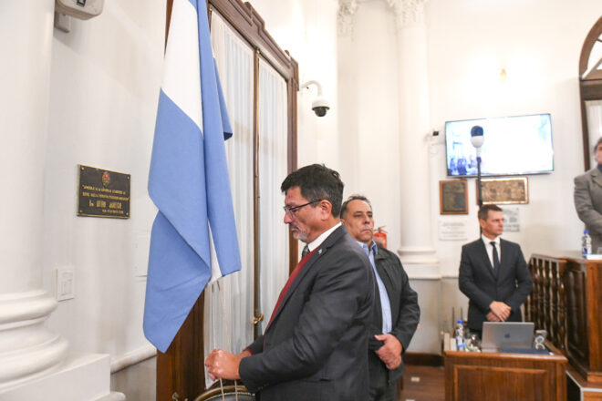 La Bandera Nacional fue izada por el senador Gustavo Vergara (Diamante- Juntos por Entre Ríos) y la Bandera de Entre Ríos por el senador Casiano Otaegui (Gualeguay – Juntos por Entre Ríos).