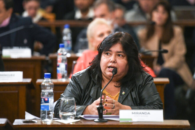 Por su parte, la senadora Nancy Miranda (Federal- Más por Entre Ríos) y presidenta de la Comisión de Legislación General fundamentó su postura y adelantó su voto: abstención. “Con respecto al proyecto, ya hablaron los dos senadores de las otras comisiones, pero la verdad que yo, escuchando los cánticos de afuera (lo dijo en referencia a la protesta que realiza la Intersindical en la Plaza Mansilla), le voy a hablar a mi partido (PJ)”, expresó la senadora del bloque Más por Entre Ríos. Y dijo: “Estoy a disposición del partido para cualquier cosa que quieran o consideren. Si quieren vamos a trabajar en serio con respecto a lo que es válido o no es válido. Y por otro lado, también les tengo que contestar a los que me escriben repudiando por privado y a este partido al cual pertenezco, porque yo soy justicialista y voy a seguir siendo justicialista”, afirmó.