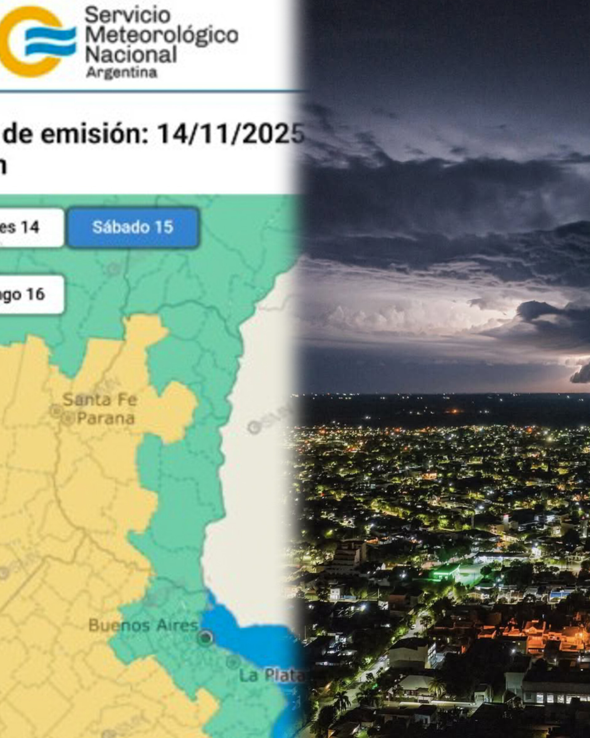 El área de Defensa Civil de la provincia informó que el Servicio Meteorológico Nacional emitió una alerta amarilla para el oeste del territorio provincial, por lluvias y tormentas para este sábado por la noche. La zona abarca los departamentos Gualeguay, Victoria, Villaguay, Nogoyá, Diamante, Paraná y La Paz.