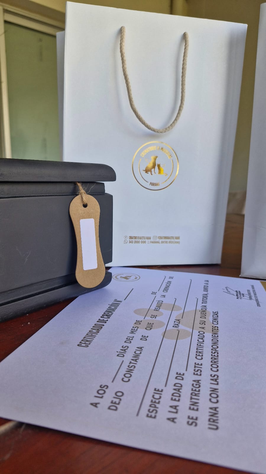 Los dueños reciben una bolsa que contiene la urna (se pueden elegir 4 modelos diferentes), un certificado con el nombre de la mascota y una vela para encender en su memoria.