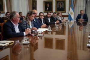 El acto tuvo lugar este martes en el Salón de los Gobernadores y contó con la presencia de los ministros de Gobierno, Manuel Troncoso; y de Desarrollo Económico, Guillermo Bernaudo; asesor de la Coordinación de Proyectos Ambientales de la Secretaría General de Gobierno, Javier Manzo; junto a los presidentes municipales y comunales de las distintas localidades adheridas, de Paraná, Rosario Romero; de Aldea Brasilera, Hugo Ramírez; de Colonia Avellaneda Ariel Weiss; de Oro Verde, César Clement; de San Benito, Ariel Voeffray; de Colonia Ensayo, Cristian Kemerer; y de Sauce Montrull, María Soledad Daneri.