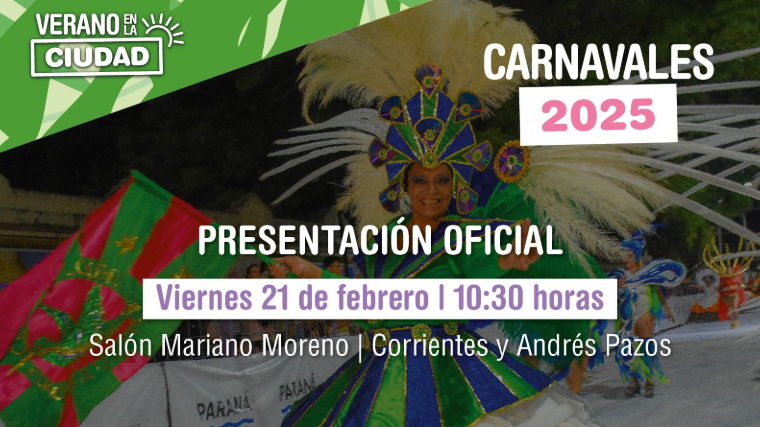 Serán del 28 de febrero al 3 de marzo y la presentación oficial se realizará este viernes 21 de febrero a las 10.30 en el Salón Mariano Moreno (Corrientes y Andrés Pazos). El evento es organizado por la Municipalidad y la Red de Artistas del Carnaval Paranaense.