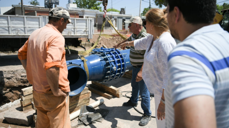 La intendenta Rosario Romero supervisó este viernes los trabajos finales de la instalación de la cañería complementaria para la impulsión de agua potable desde la Planta Echeverría al Centro Distribuidor Lola Mora. La intervención garantizará un óptimo abastecimiento del suministro en el este y sureste de la ciudad.