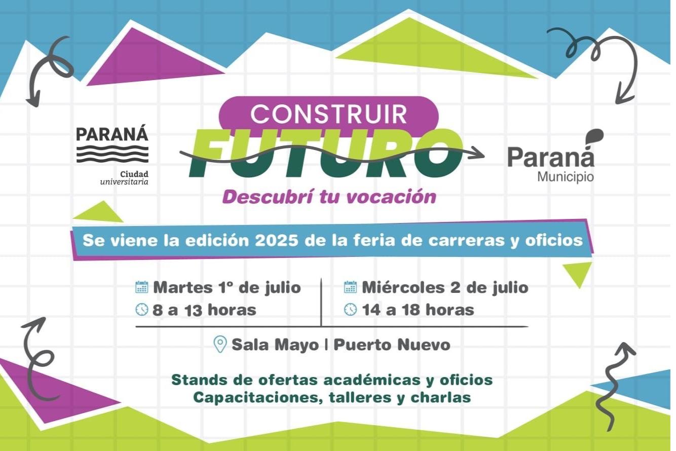 La Municipalidad de Paraná, a través de la Dirección General de Juventudes, presenta la segunda edición de la feria de ofertas académicas y oficios Construir Futuro.