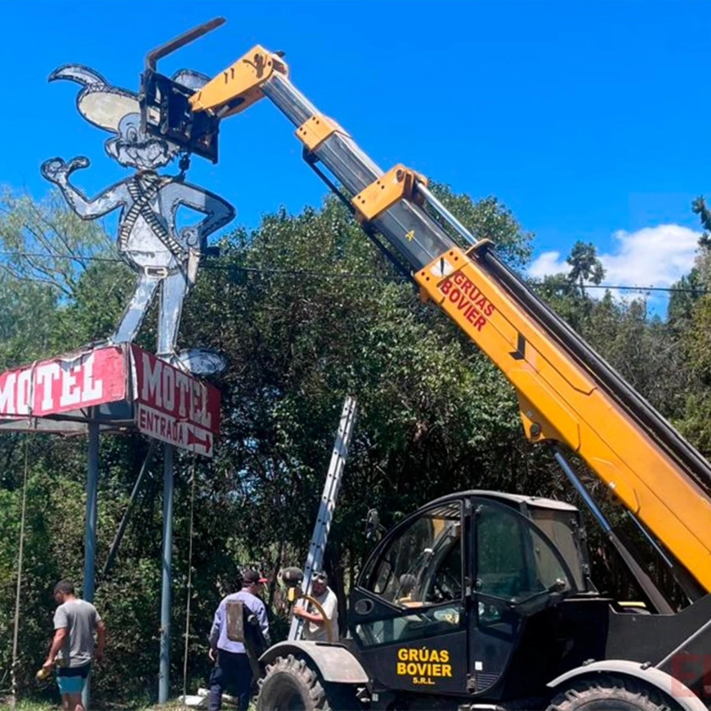 La figura del conejo mexicano, que durante más de cinco décadas estuvo en la fachada de un motel de calle Blas Parera al 2000 de Paraná, fue retirada este miércoles en medio de un operativo que incluyó los servicios de una grúa.