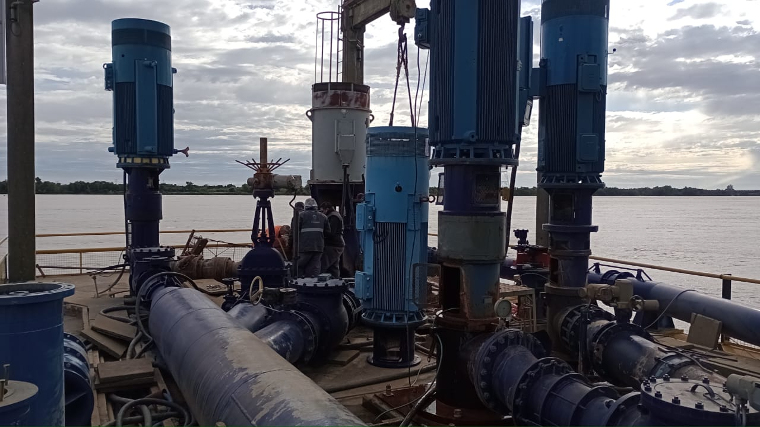 Cerca de las 22.30 de este viernes concluyó el reemplazo y se puso en funcionamiento una de las bombas que capta agua cruda del rio Paraná, para ser potabilizada en la planta Echeverría.