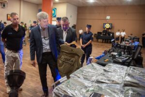 En tanto, en materia de equipamiento, se otorgó 200 pistolas calibre 9 milímetros, entre el nuevo armamento que se adquirió, y un rifle Byrna Compacto Táctico (TCR), diseñado como una lanzadora versátil y confiable para la defensa, entre otros elementos de equipamiento menor destinados a fortalecer la capacidad operativa institucional.