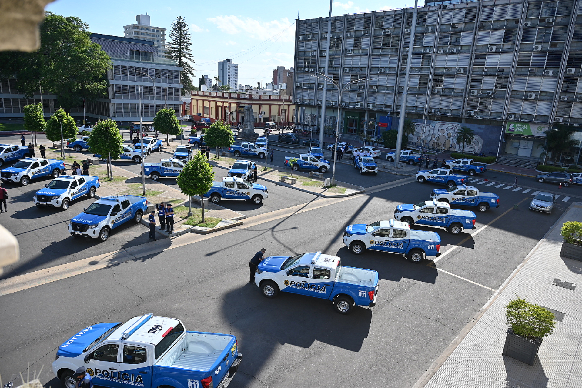 «Hoy es un día histórico realmente para nuestra fuerza policial. Hace muchísimas décadas no se hacía una inversión de esta magnitud y de esta calidad de vehículos en la seguridad de la provincia», aseguró el gobernador Rogelio Frigerio durante el acto de entrega, que se realizó en Plaza Mansilla de Paraná, y en el que estuvo acompañado por el ministro de Seguridad y Justicia, Néstor Roncaglia.