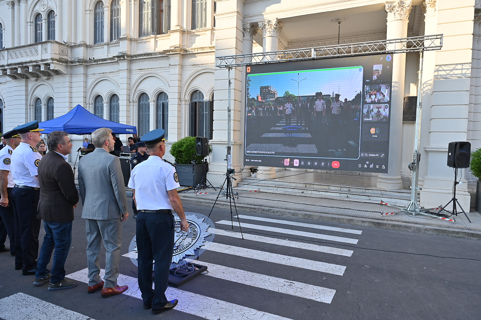 Del acto participaron también el jefe de Policía, Claudio González, y los jefes departamentales, quienes siguieron la actividad de manera remota.
