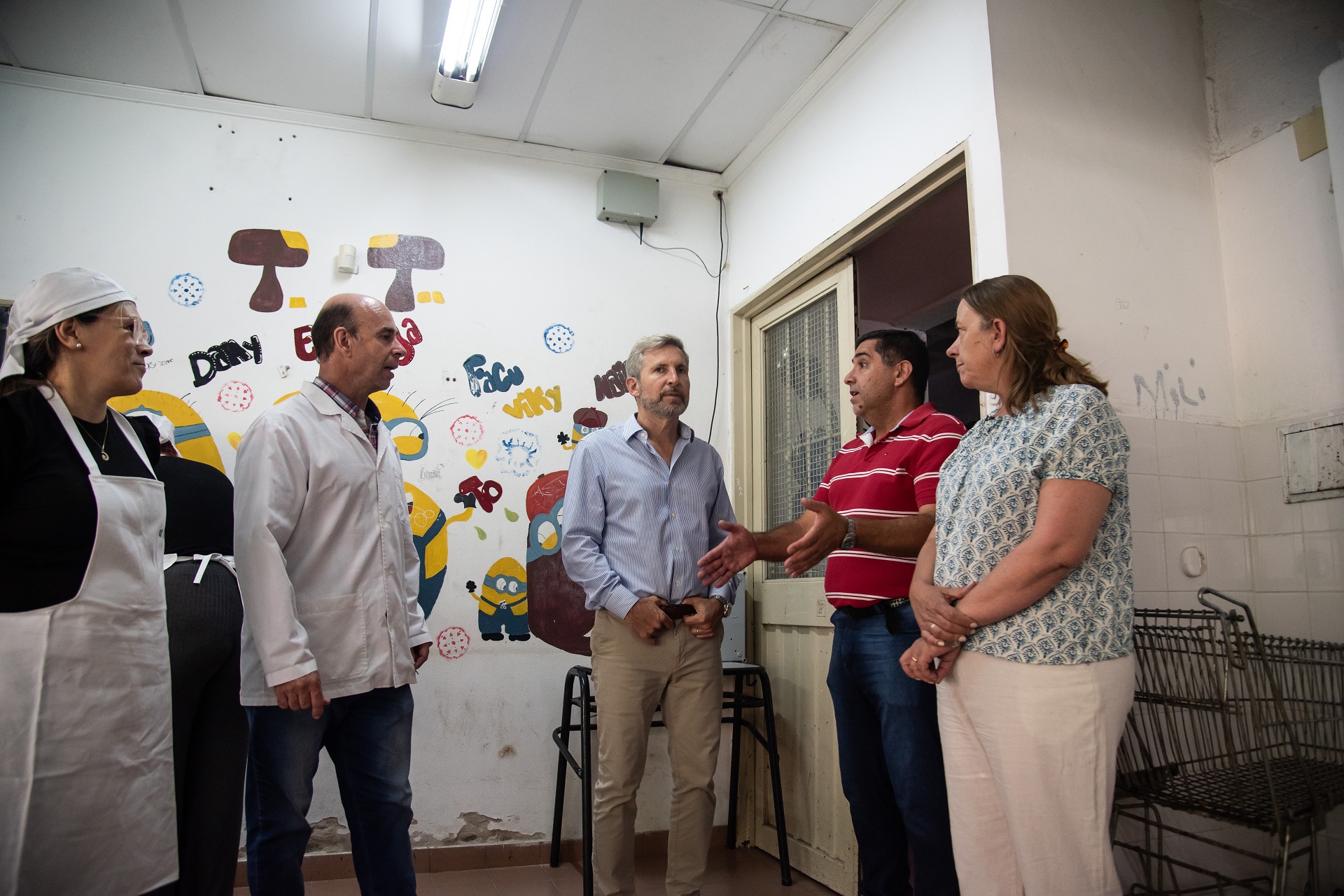 Frigerio concurrió acompañado por la ministra de Desarrollo Social, Verónica Berisso; el secretario de Gestión Social, Pablo Omarini; y el director de Comedores de la provincia, Lautaro Azzalini, y fue recibido por el director Gustavo Sachs y la cocinera Alejandra Moreira.