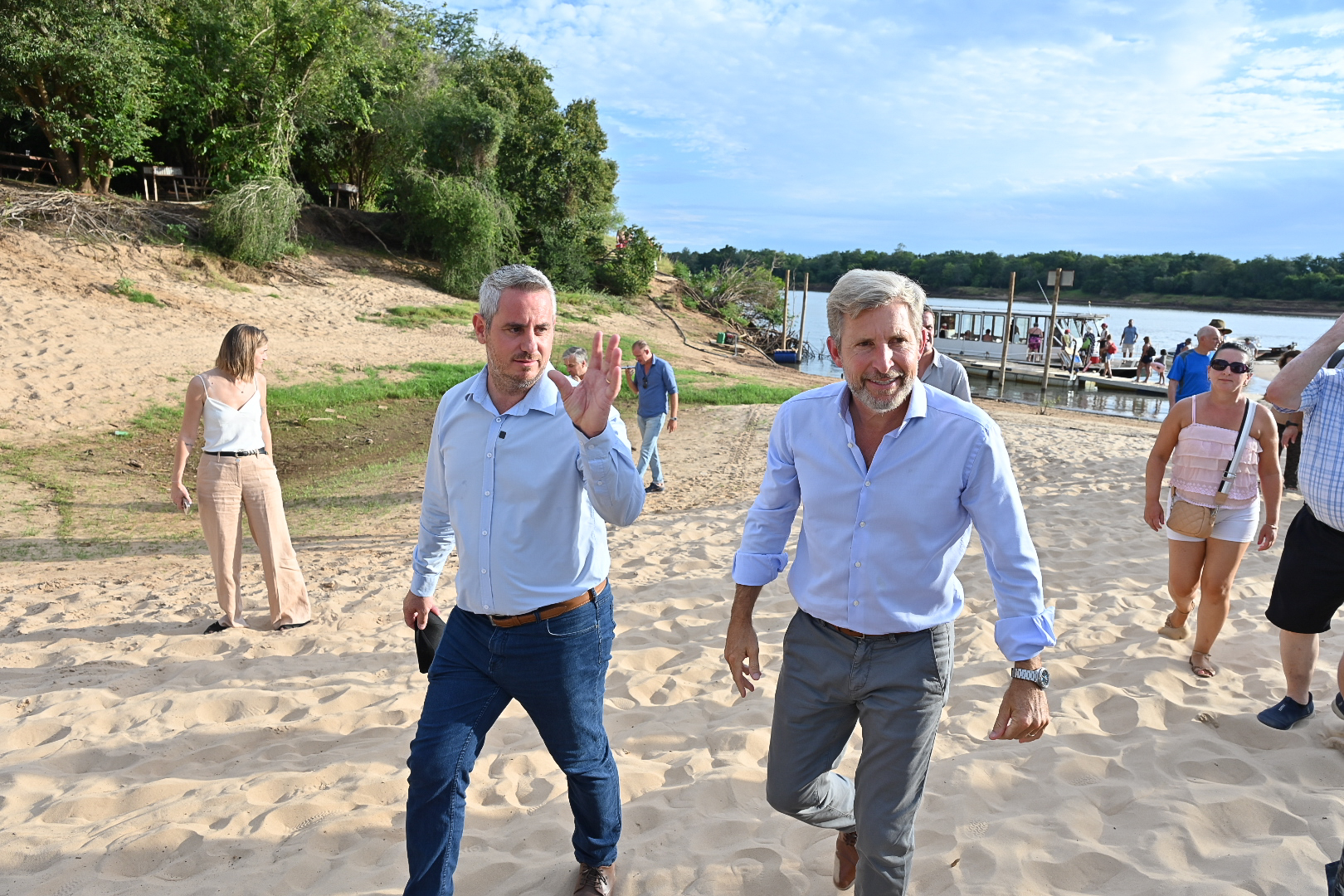 El gobernador Rogelio Frigerio estuvo en la Isla de Hornos, frente a las playas de Colón, donde se desarrolla un emprendimiento turístico, aprovechando los arenales extensos rodeados por montes nativos que ofrece el lugar.