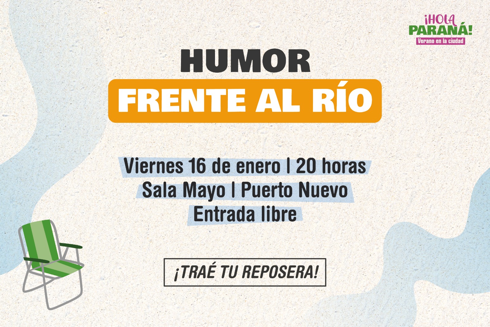 Este viernes 16 de enero, a las 20 horas, en Sala Mayo, en Puerto Nuevo, se realizará una nueva edición de Humor frente al río, un ciclo cultural con entrada libre y gratuita que invita a disfrutar de espectáculos de humor, música y teatro al aire libre.