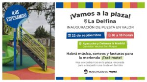 Será este viernes 22 de septiembre, de 16 a 18 hs. Habrá propuestas artísticas, culturales y recreativas, sorteos y merienda. El Municipio invita a la comunidad a acercarse al renovado espacio público, ubicado en calles Ayacucho y Mártires de la Defensa de Madrid.
