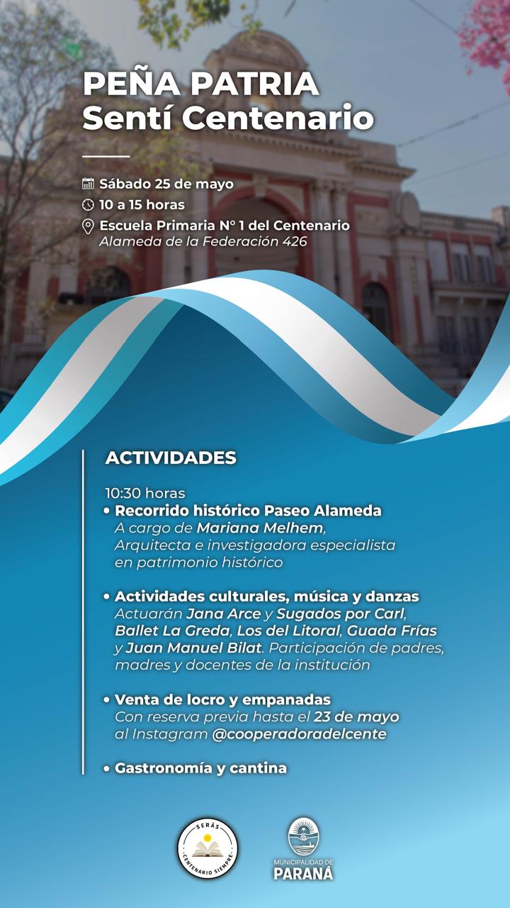 Será el sábado 25 de mayo de 10 a 15 en la Escuela del Centenario, ubicada en calle Alameda de la Federación. Participarán artistas locales y habrá opciones gastronómicas y cantina. Organizan los distintos niveles de la comunidad educativa, cooperadoras y el club Español. Acompaña la Municipalidad.