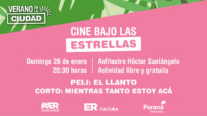 Será este domingo 26 de enero a las 20.30 en el Anfiteatro Héctor Santángelo. Con entrada libre y gratuita, los asistentes al ciclo pueden disfrutar de una selección de películas nacionales y cortometrajes destacados del Festival Internacional de Cine de Entre Ríos (FICER).