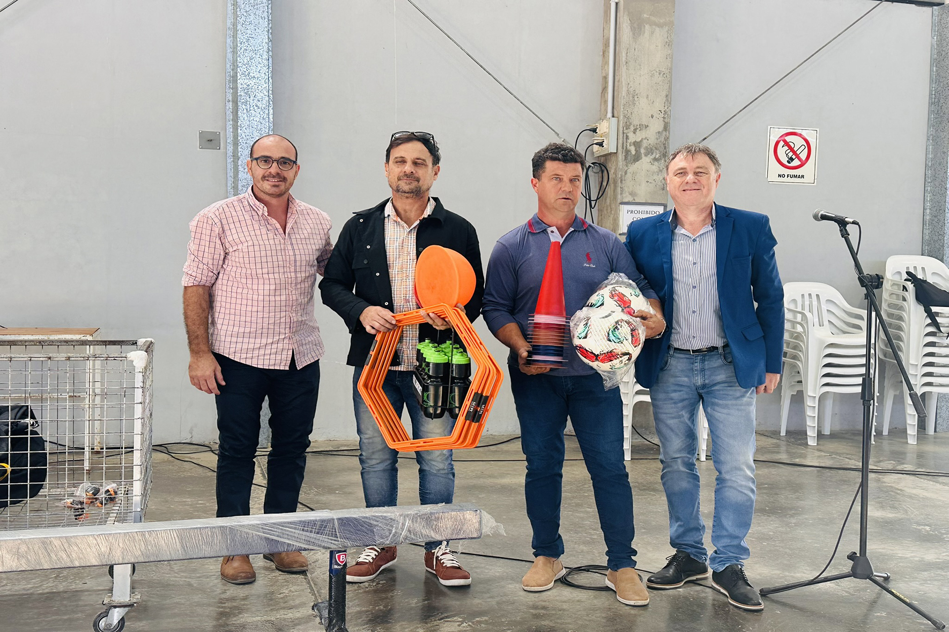 El acto se realizó en el gimnasio del complejo, donde se dictan clases de vóley, básquet, patín artístico y taekwondo. En ese marco, el municipio entregó material para entrenamiento en diferentes disciplinas a clubes de la localidad.