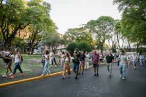 El recorrido inició en Avenida Los Vascos y Apolinario Osinalde, frente a la Escuela Pueyrredón, continuando por distintos puntos emblemáticos del barrio, para luego finalizar en la Plaza de las Naciones, uno de los espacios públicos más representativos del sector. Participó de la actividad el secretario de Educación, Cultura y Convivencia Ciudadana, Rubén Clavenzani.