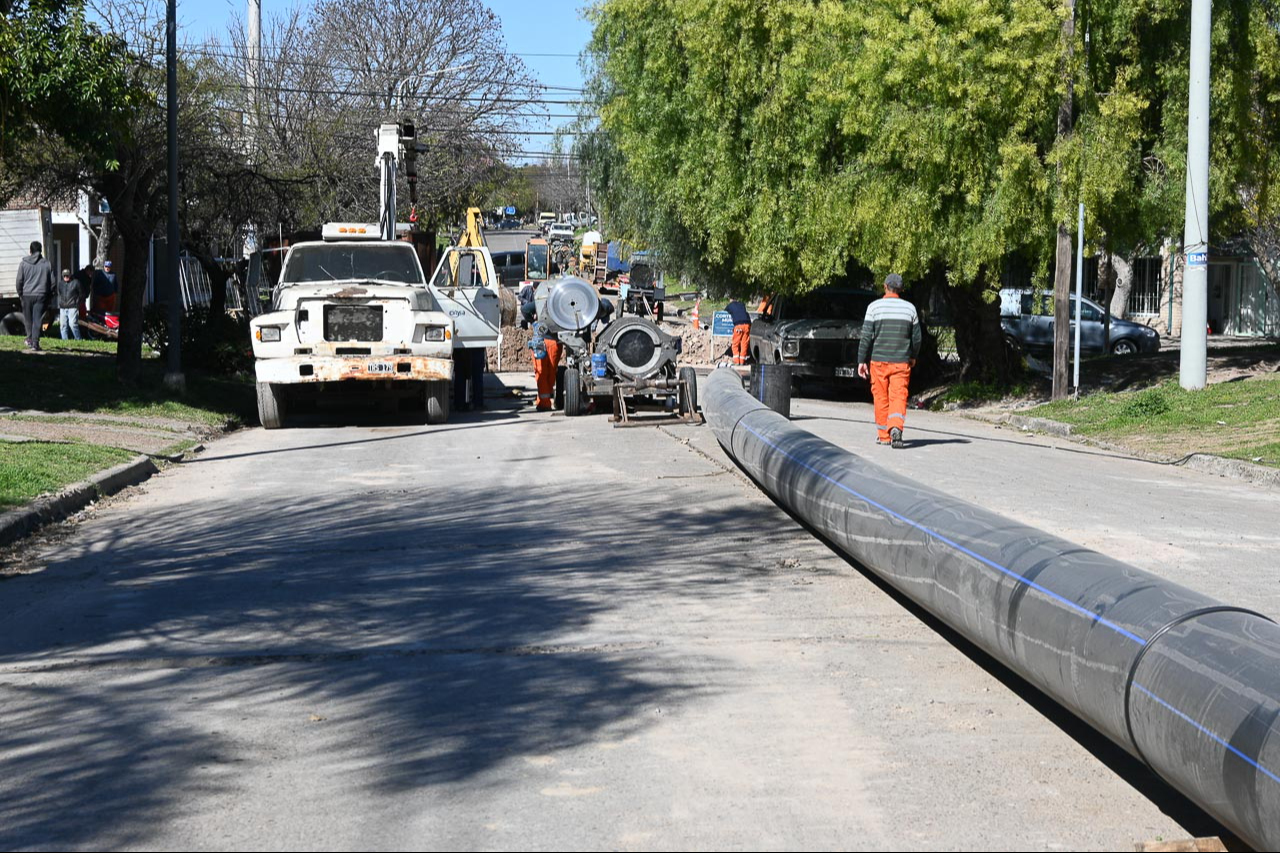 En una nueva instancia de la obra, se realizará el paso de un tramo del nuevo tendido de cañería de polietileno de alta densidad de 500 mm que conecta la Planta Echeverría con el Centro Distribuidor, ubicado en avenida Ramírez. Esta acción busca mejorar la dotación de agua potable de la ciudad.