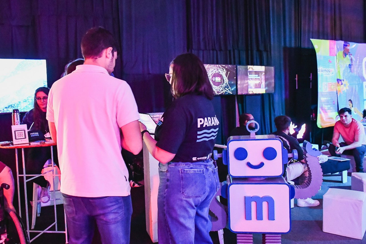 En el stand de la Municipalidad el público pudo conocer mediante un juego de trivia los alcances de “Muni”, el primer chatbot de la provincia, que utiliza inteligencia artificial aplicada los gobiernos locales y que conecta la Municipalidad con vecinos y vecinas de Paraná mediante WhatsApp. En este sentido, el subsecretario de Modernización, Emanuel Orzuza, expuso en un panel bajo el título “Inteligencia Artificial, IA Tú Sabes, Muni full experience”.