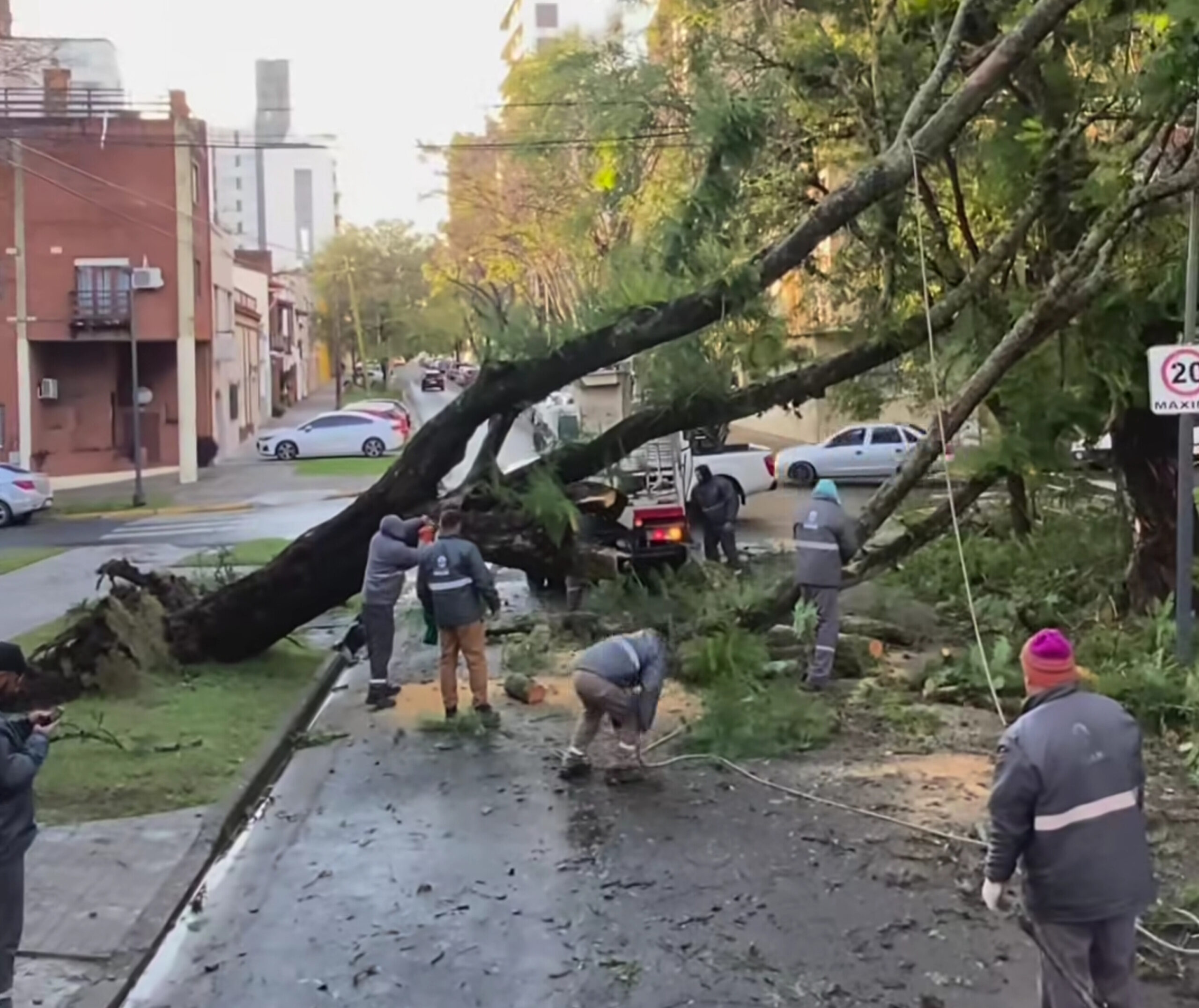 Un severo temporal, acompañado de abundante caída de agua, generó diferentes inconvenientes en la ciudad de Paraná y la región. Personal de Defensa Civil municipal intervino para retirar de la vía pública dos árboles caídos, uno de ellos en barrio Paraná XVI y el restante, en zona de calle Fraternidad.