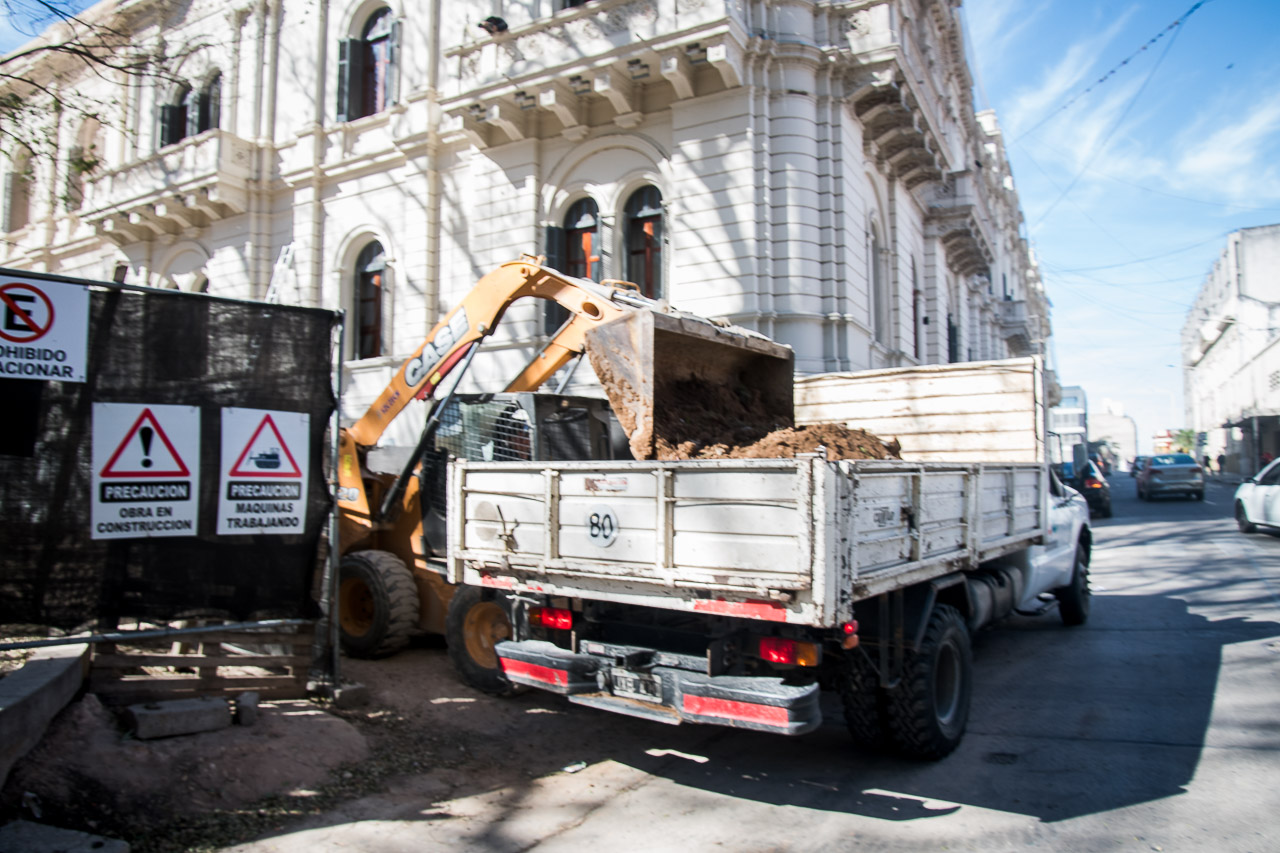 Las tareas comenzaron desde la esquina de calle Santa Fe, donde se realiza un conducto pluvial. Paralelamente, se avanza en la colocación del contrapiso y del piso que completarán este sector. También se llevarán a cabo tareas pendientes en la plaza, como la finalización del tablero eléctrico, la puesta en marcha de las fuentes y la instalación de luminarias faltantes, tanto en el perímetro como en zonas específicas de árboles y monumentos.