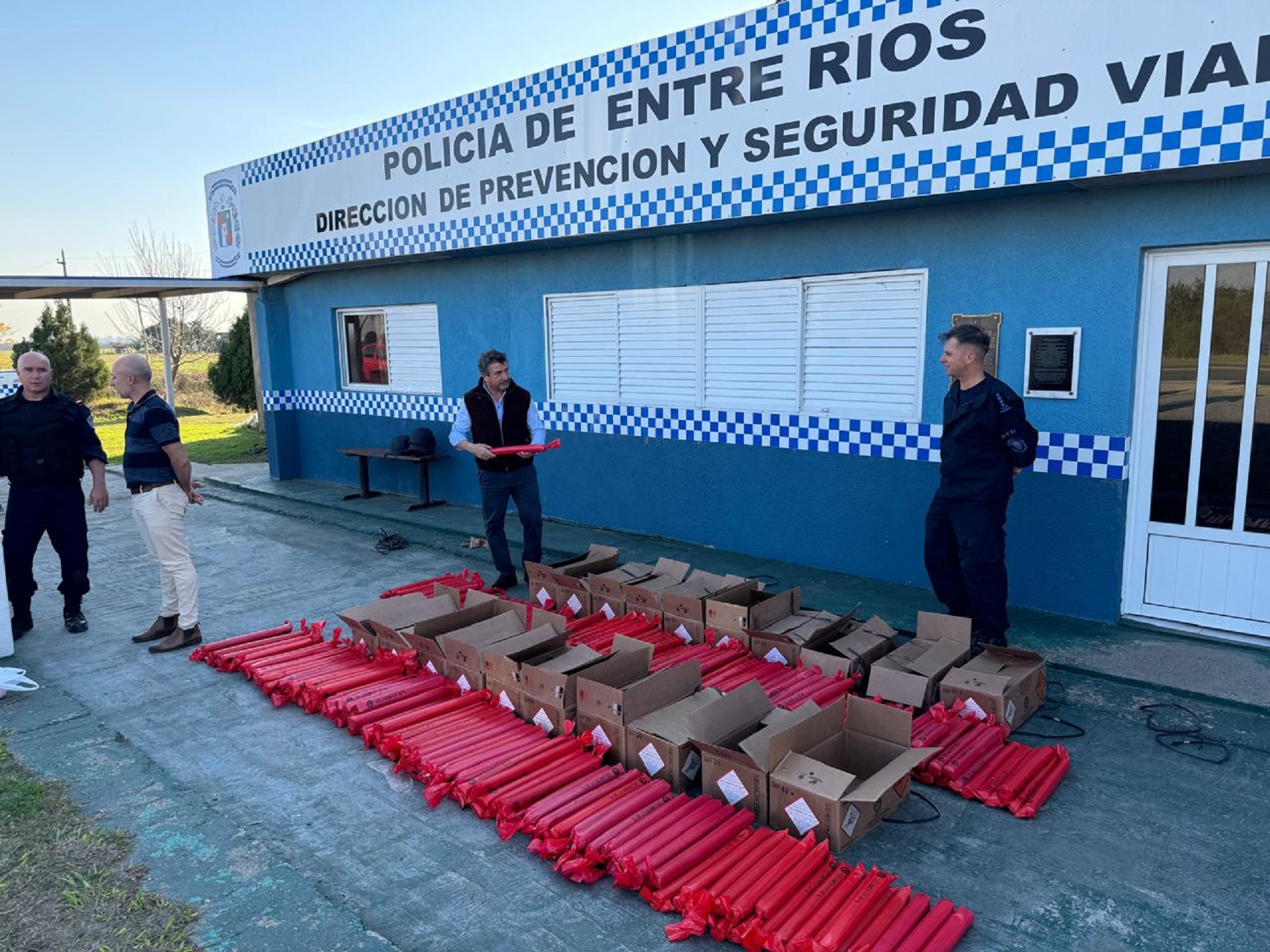 Trabajaron en el lugar, personal de la Policía de Entre Ríos y la brigada de Explosivos de Bomberos Zapadores quienes por disposición del ministro realizaron el traslado del material a los galpones del Ejército.