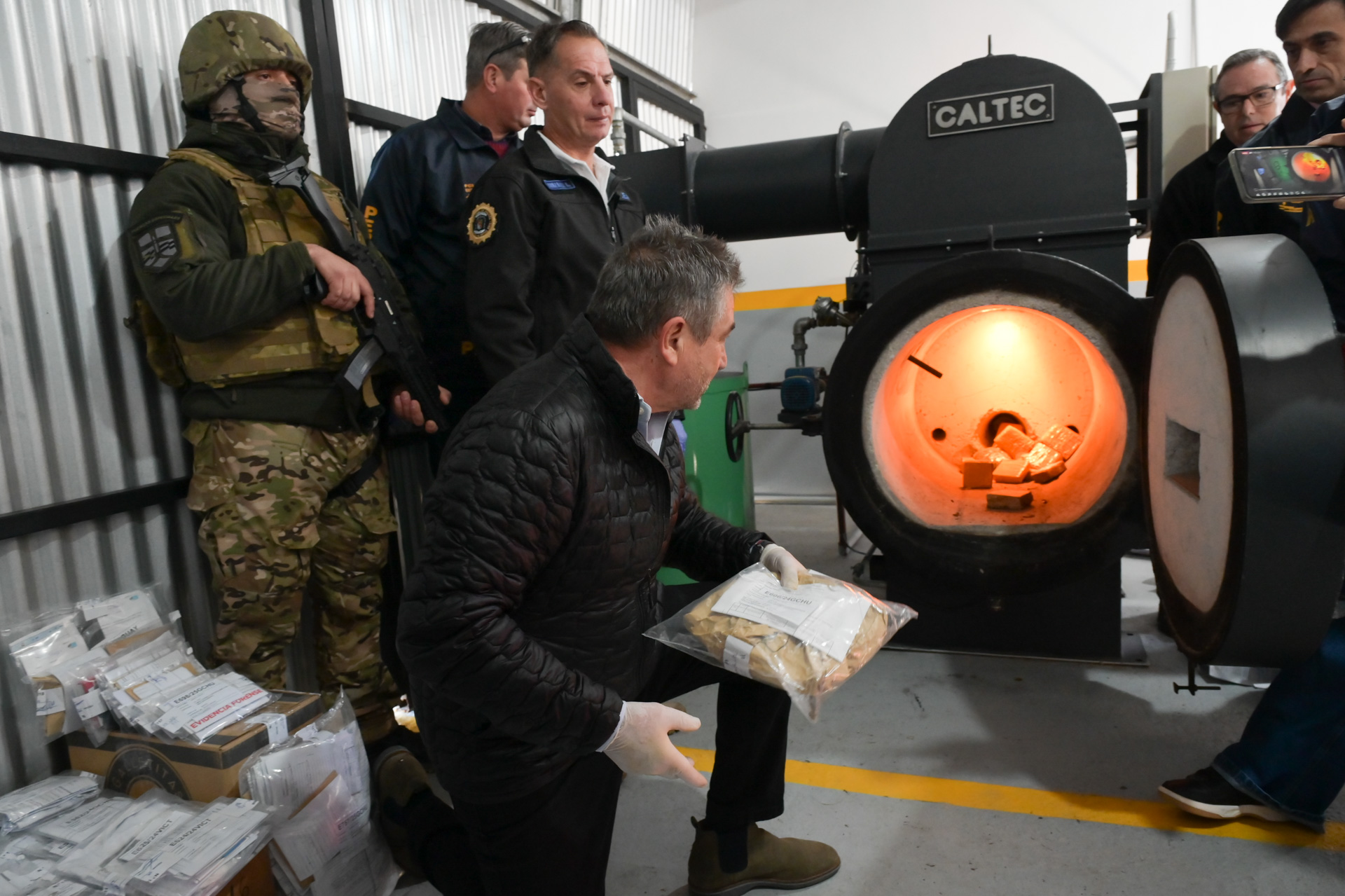 «Tenemos una premisa y es que drogas que se encuentran, drogas que se analizan y se queman. Hoy acá vemos la última etapa, pero hay un proceso anterior, que es una investigación, que la hace la Policía de la provincia y de fuerzas federales también; allanamiento y secuestro con la colaboración siempre de la Justicia», subrayó el ministro Roncaglia.