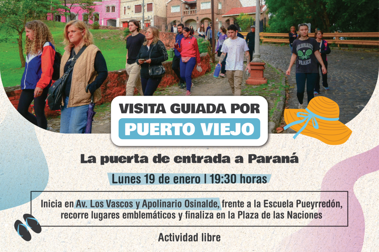 La Municipalidad de Paraná invita a vecinos, vecinas y visitantes a participar de La Puerta de entrada a Paraná, una visita guiada por el tradicional barrio Puerto Viejo, que se realizará el lunes 19 de enero a las 19:30 horas. La actividad es libre y gratuita.
