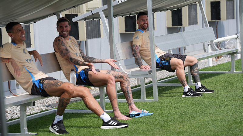Al grupo se lo vio con buen semblante, en especial a Messi, Rodrigo De Paul y Ángel Di María, quienes se divirtieron un rato mientras estuvieron sentados en el banco de la cancha auxiliar. O al menos eso pudo apreciarse por las fotos oficiales que la Asociación del Fútbol Argentino subió a través de las redes sociales. Sonrisas, chistes y complicidad luego de lograr parte del objetivo.