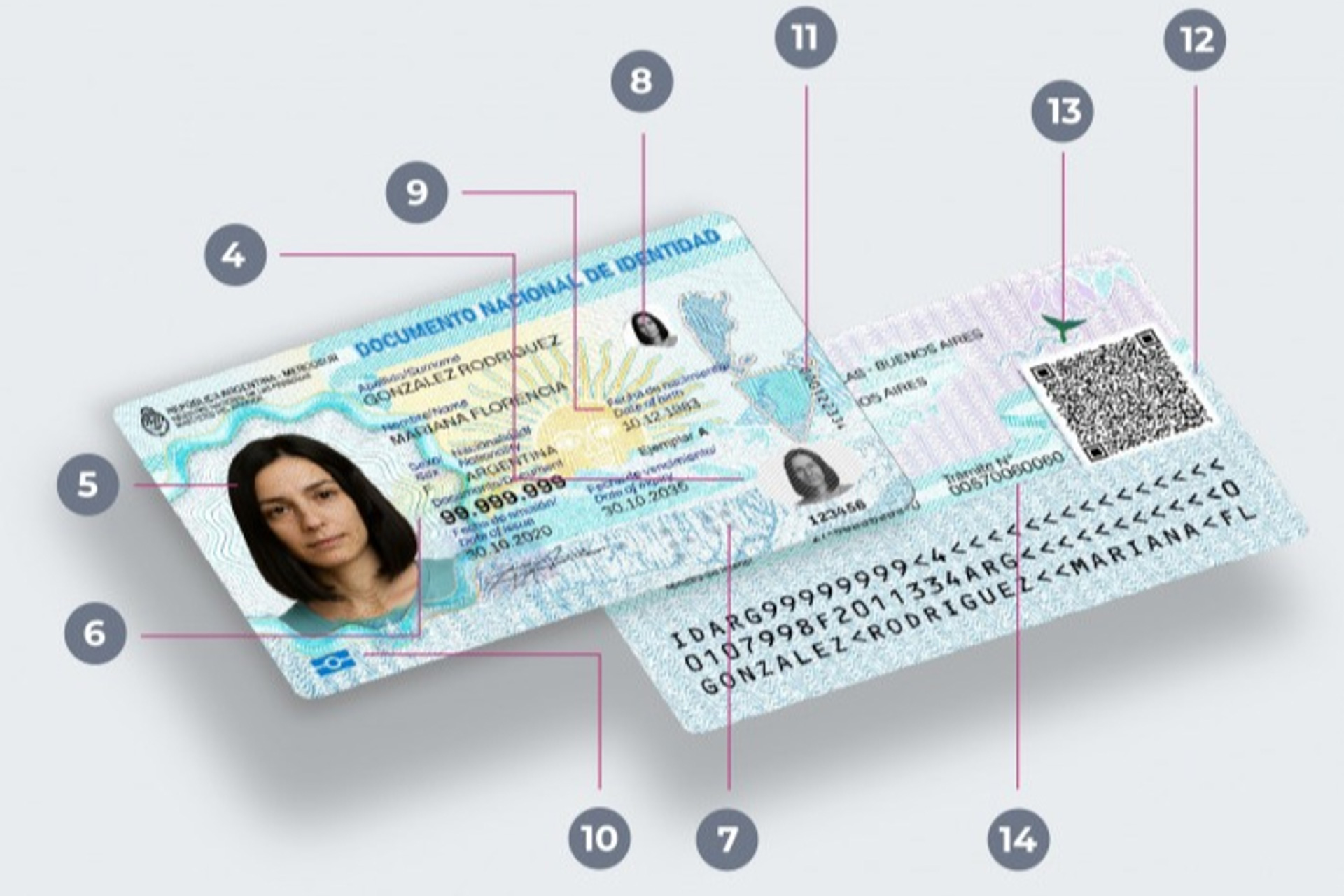 El rediseño cuenta con una tarjeta de policarbonato multi capa, más resistente y más difícil de ser falsificada. A nivel visual, suma hologramas actualizados y grabados láser, junto a símbolos nacionales como el escudo, la escarapela, el Sol de Mayo y el mapa bicontinental. Se mantiene también la identificación bajo el sistema Mercosur y la autoridad del Registro Nacional de las Personas (Renaper).