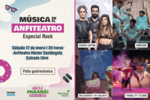 Este sábado 17 de enero, desde las 20 horas, el Anfiteatro Héctor Santángelo será escenario de una nueva fecha del ciclo Música en el Anfiteatro, con una programación especial dedicada al rock. La propuesta es de entrada libre y contará con patio gastronómico, en un espacio pensado para el encuentro y el disfrute de vecinos, vecinas y visitantes.